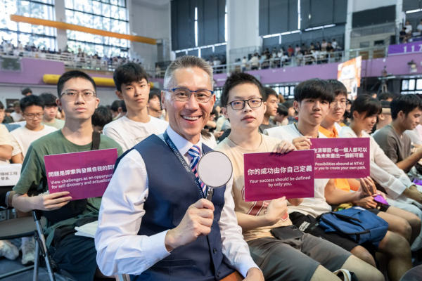 高為元告訴新生,「你的成功由自己定義,世界上一定有只有你才能解決的問題。」他強調,清華是自由多元的校園,希望新生們盡情探索、盡其自我實現,「在清華園,每一個人都可以為未來畫出一個新可能。」校長致詞後,與師生一同拋出紫色彩帶,祝賀新生展開精彩的校園生活。