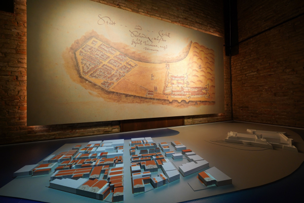 熱蘭遮堡及市鎮空間重建模型,透過多媒體及科技參觀者對400年前歷史更有感。照:成功大學提供