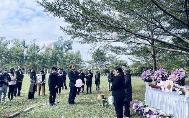 南華大學生命禮儀研究中心為強化自然葬的儀式感,促進喪親家屬的悲傷撫慰效果,並提升殯葬服務的價值,在生死學系所的協辦下,於日前規劃執行「自然葬儀式的創新與展演」活動計畫,透過專題講座、交流對話與戶外自然葬儀式展演,深化自然葬的儀式感與人文關懷,並提升殯葬服務在悲傷撫慰、生命教育與環境永續上的價值。活動吸引產官學界代表、殯葬業者及學生團隊等約七十人共襄盛舉,展現學界與業界攜手推動自然葬發展的行動力。