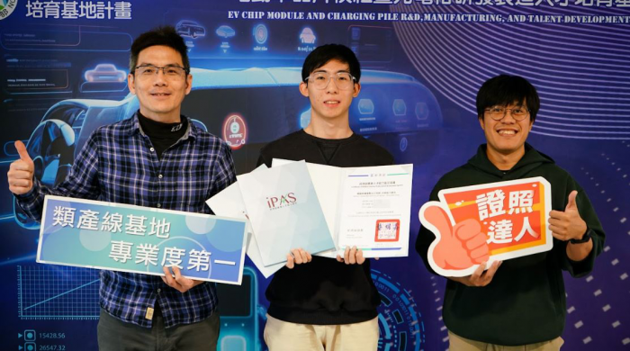 證照輔導教師張幼銘提到,胡安銘學習態度踏實,不僅課堂表現穩定,也主動協助同儕整理重點、交流學習經驗,雖從一般高中體系轉讀技職科大,但在教師專業指導、明確課程架構與完整資源支持下,逐步建立專業能力,並反映在成績與證照成果上。不僅如此,崑山科大在教育部補助支持下,建置「電動車晶片模組暨充電樁研發製造人才培育基地」等共計17座類產線實作基地,完整對接產業實務需求。學生可在校內即進入貼近業界的實作場域,透過設備操作與情境式訓練,深化專業技能,不僅有效提升實務能力,也成為準備各項專業證照考試的重要後盾。