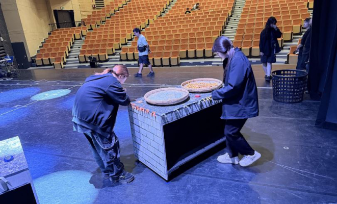 南華大學民音系攜手雲林愛樂產學共製音樂劇,展現學生實戰力,學生協助舞台道具場上定位。照:南華大學提供