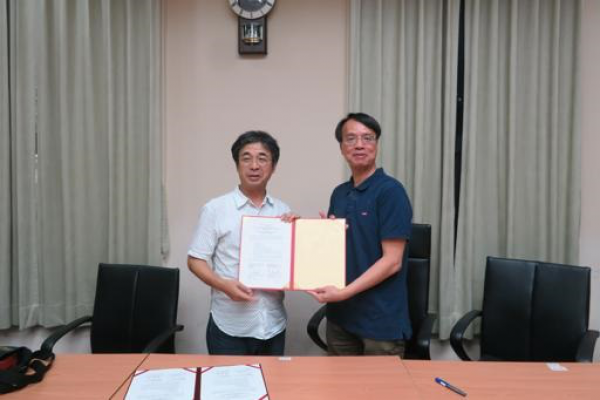台大生工系主任廖國偉(右)與岡山大學簽訂MOU。(圖/台大生工系官網)
