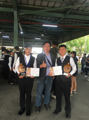台南應用科大餐飲系葉俊廷助理教授、餐飲系鄭傑夫助理教授、旅館系謝才智助理教授指導學生參加2023第十屆台灣蓬萊盃全國調酒暨托盤咖啡大賽,以精湛外場服務托盤技術贏得評審高度肯定,共贏得全國亞軍、季軍、殿軍獎盃的傲人成績,全校師生深感與有榮焉。