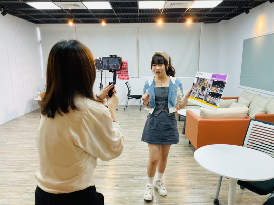 國家考試電腦化測驗試場揭牌儀式,由義守大學大傳系學生擔任直播主,為儀式揭開序幕。照:義守大學提供