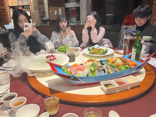 從餐宴設計到AI說菜,把歷史端上桌。歷史學系學生何績穎、周立淇發起〈歷史餐宴設計〉與〈歷史餐宴說菜訓練〉,將清法戰爭滬尾宴、澎湖宴等史料轉化為菜單與說菜詞,並透過AI語音練習,甚至與雄獅旅行社、淡水紅樓餐廳合作展示。何績穎說,這不僅是歷史轉譯,更是跨領域整合與溝通協作的學習。