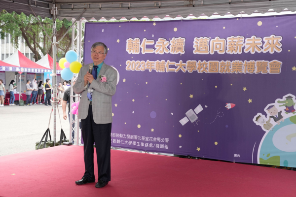 輔大校長江漢聲致詞時強調,企業最愛畢業生調查,輔大常常拿下私校第一,顯示輔大辦學認真才能獲得青睞。照:輔大提供