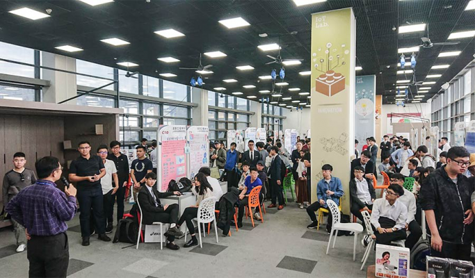 逢甲大學資電學院積極辦理大型專題成果發表會。未來資訊工程學系學士後專班採實務與精實授課,全力協助有意跨足科技業的學生順利轉職。照:逢甲大學提供