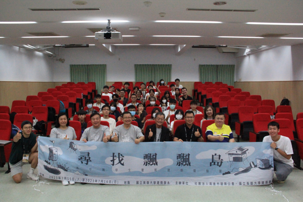 「今年營隊主題為『尋找飄飄島』,引導學生創造水上漂流空間,激發學生對於建築設計創作的興趣。」營隊總召、高雄大學建築學系教師蔡寧與馬瑜嬪表示,隨著全球的氣候劇烈變化,冰山溶解,海水上升,臺灣是一個四面環海的國家,如何與水和平共存更是一個重要的未來性議題。蔡寧與馬瑜嬪老師並且強調,建築學系的設計課中,創意並非只是空中樓閣,更必須付諸實踐,活動最後透過建築評圖活動讓學員練習表達能力,在成果發表中,與高雄市建築師公會建築師群,以及所有與會人員互動分享成果飄飄島作品。