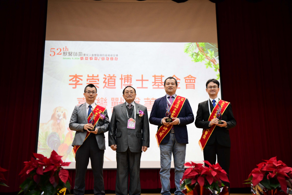 本次大會中頒發「中華民國傑出獸醫師貢獻獎」、「李崇道博士基金會:台灣獸醫菁英獎」、分別頒發「服務70年、60年、50年、40年、30年獎」,其中本校獸醫學系林昭男主任獲頒「李崇道博士基金會:台灣獸醫菁英獎」,以及獸醫學系蔡清恩教授獲頒「服務40年獎」,感謝師長們在獸醫學領域的貢獻。