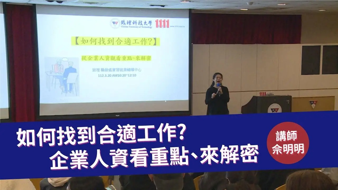 如何找到合適工作 從企業人資觀看重點~來解密 講師佘明明 |致理科大職涯講座【完整版】
